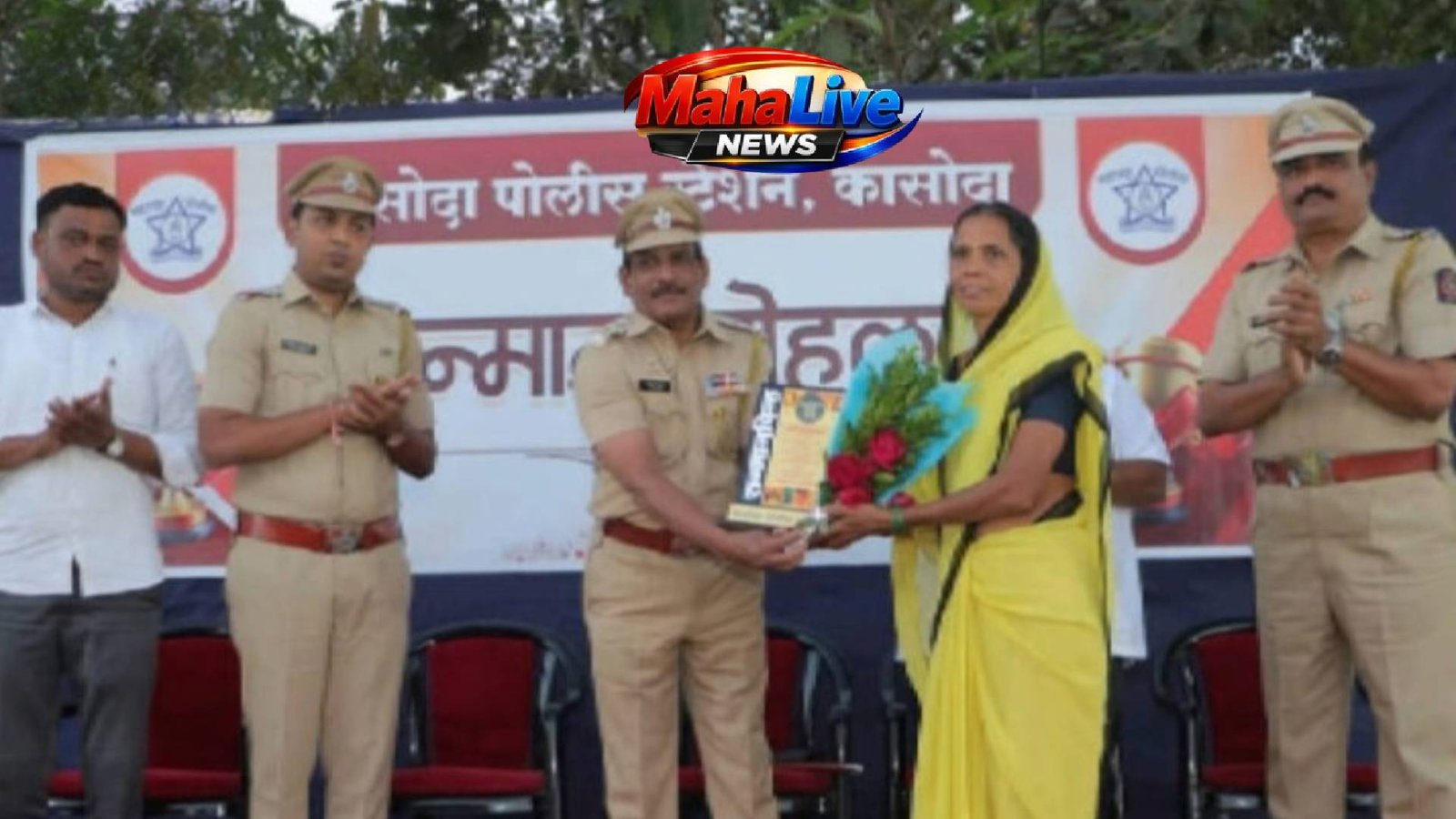 या त्यांच्या हिमतीची दखल घेत कासोदा पोलीस स्टेशन यांच्या वतीने चाळीसगाव पोलीस स्टेशनचे डी वाय एस पी विजयकुमार ठाकुरवाड, कासोदा पोलीस स्टेशन एपीआय श्रीकांत पाटील, पीएसआय धर्मराज पाटील, पोलीस पाटील प्रदीप तिवारी यांच्या हस्ते अंगणवाडी मदतनीस रंजनाबाई दिलीप ठाकरे यांचा सन्मान करण्यात आला. अंगणवाडी मदतनीस रंजनाबाई ठाकरे यांचे आमदार अमोल पाटील यांनी देखील कौतुक केले आहे.