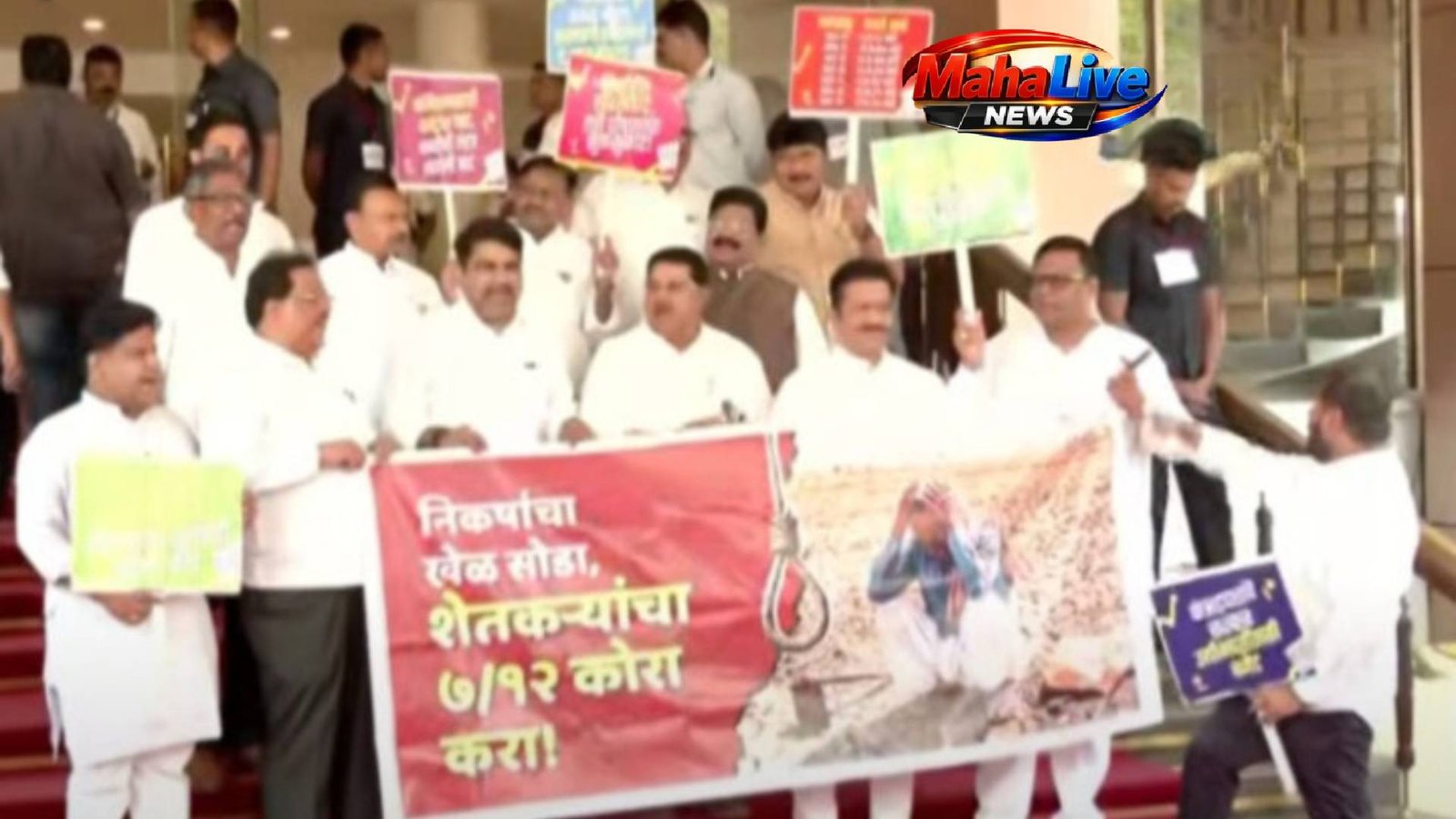 महाराष्ट्र विधानमंडळाच्या अर्थसंकल्पीय अधिवेशनादरम्यान, विरोधकांनी विधानभवनाच्या पायऱ्यांवर शेतकऱ्यांच्या प्रश्नावर तीव्र आंदोलन केले. शेतकऱ्यांचा सातबारा पूर्णपणे कोरा करावा, ही विरोधकांची प्रमुख मागणी आहे. यंदाच्या अर्थसंकल्पात सरकारने दोन लाखांपर्यंतचे कृषी कर्ज माफ करण्याची घोषणा केली आहे. मात्र, विरोधकांनी या घोषणेवर टीका करत, ही कर्जमाफी अपुरी असल्याचे म्हटले आहे.