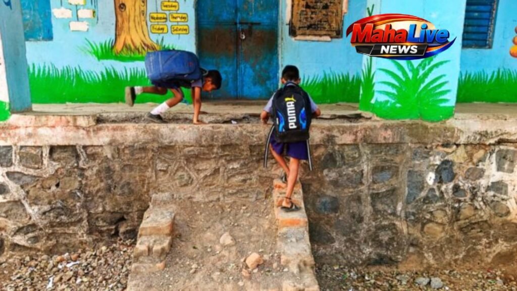 वरणगाव प्रतिनिधी : भुसावळ तालुक्यातील सिद्धेश्वर नगर येथील जिल्हा परिषद प्राथमिक शाळा, भारतरत्न डॉ. बाबासाहेब आंबेडकर आदर्श शाळा योजनेअंतर्गत येते, तिची स्थिती गंभीर आहे. शाळेतील विद्यार्थ्यांना वर्गात जाण्यासाठी पायऱ्या नसल्यामुळे रोजचं धोकादायक कसरत करावी लागते, तर शाळेतील मुतारी, शौचालय, वर्गाजवळील वरांडा आणि कंपाऊंड ही अत्यंत खराब स्थितीत आहेत.पावसाळ्यात इमारतीच्या भिंतींवर गळती होते, त्यामुळे वर्गातील परिस्थिती आणखी बिकट होते. यामुळे विद्यार्थ्यांचे शारीरिक व मानसिक आरोग्य, तसेच शिक्षणावरही नकारात्मक परिणाम होत आहे.